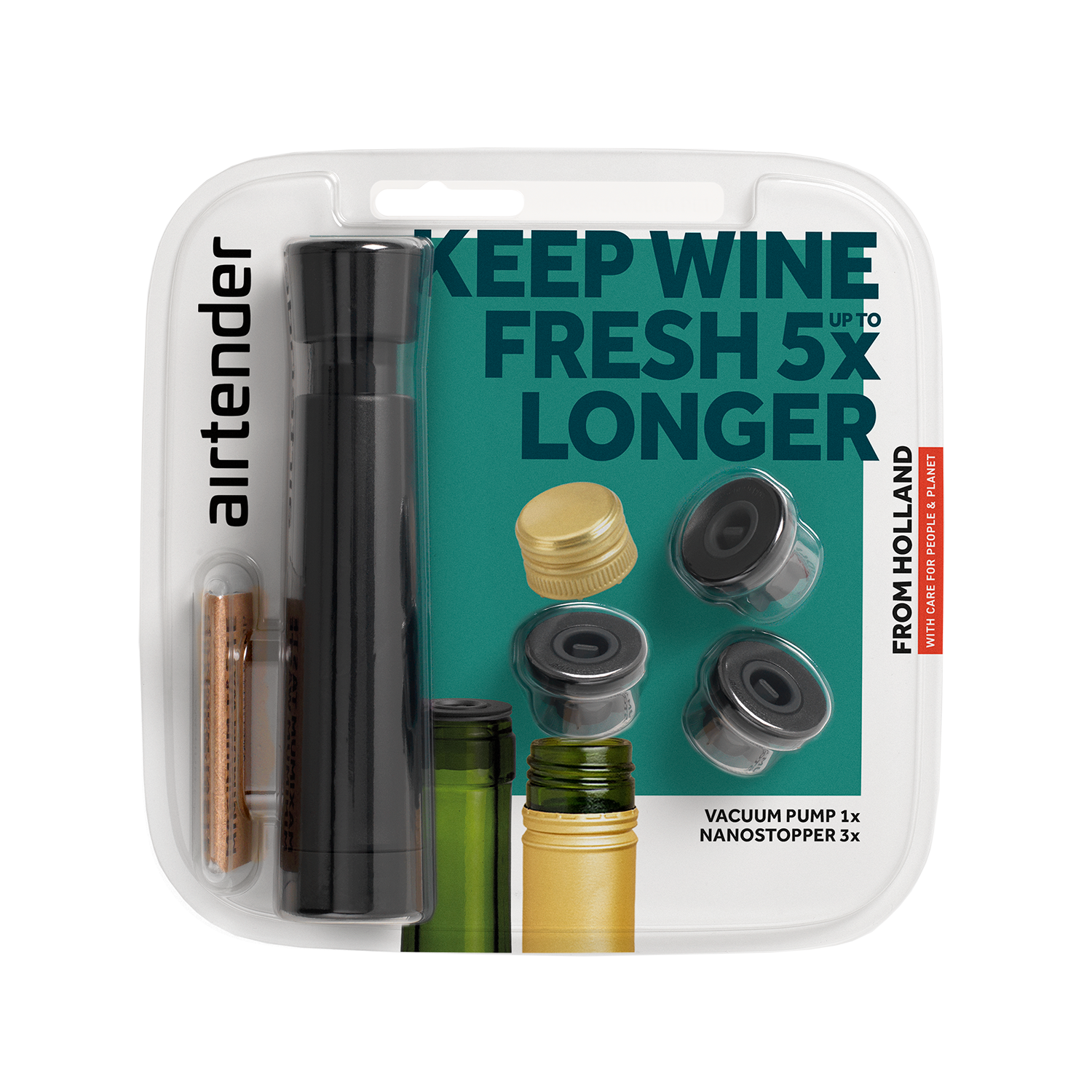Experience next-generation wine saving and keep wine fresh and full of flavour up to 5x longer. Store up to 3 opened bottles leak-free under vacuum in wine rack, refrigerator or cooler, even horizontally.